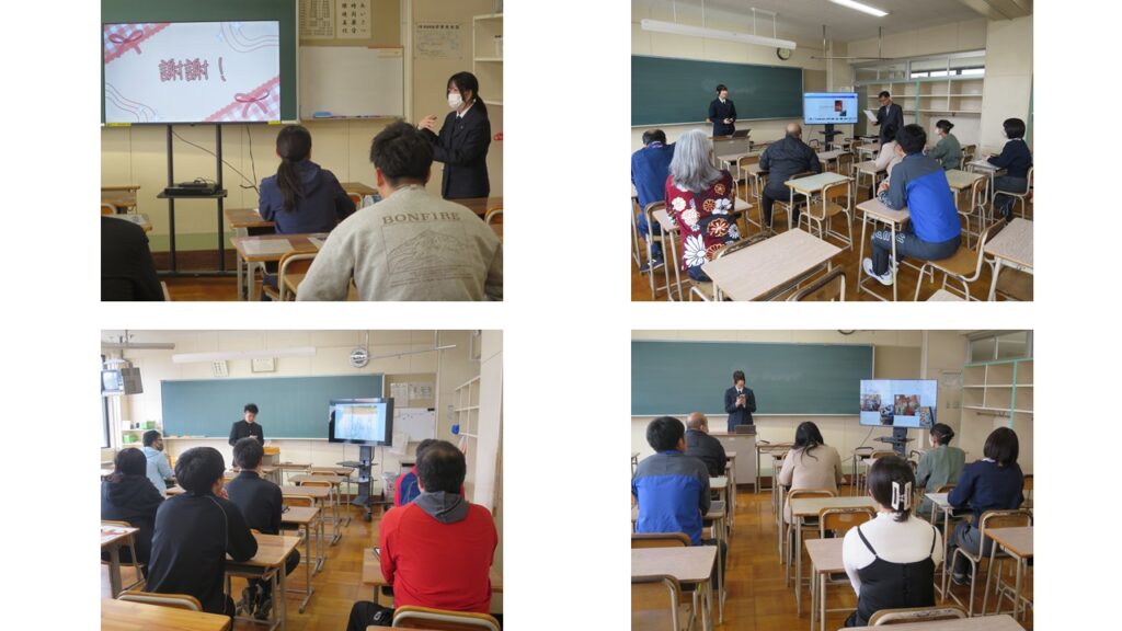4月6日、国際教養教育に係る校内研修会として、本プログラムに参加した4名の生徒が、現地での体験や省察の成果を発表し、海外研修を通して身に付けた資質・能力について教職員と共有しました。発表後には、文化や教育内容、人々の価値観の違い、意識の変化、改めて感じた地域の魅力などをテーマに、教員と研修生徒との間で活発な質疑応答が行われました。多様な視点から学びを深める有意義な時間となり、教職員にとっても今後の指導の在り方を考える貴重な機会となりました。