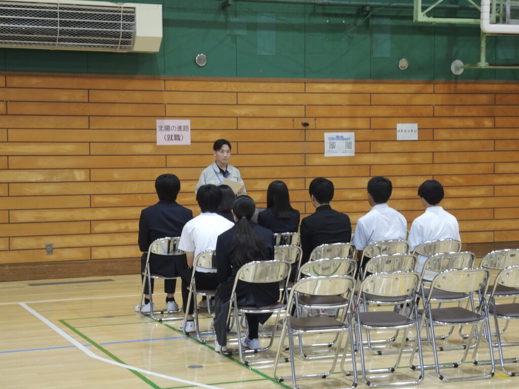 はい。北陽高校では、進路ガイダンスの中で民間就職や公務員も含めて分野別に説明が行われています。大学進学だけでなく、就職希望者に対しても就職マッチングから履歴書指導や面接指導等、必要な支援を行う学校です。